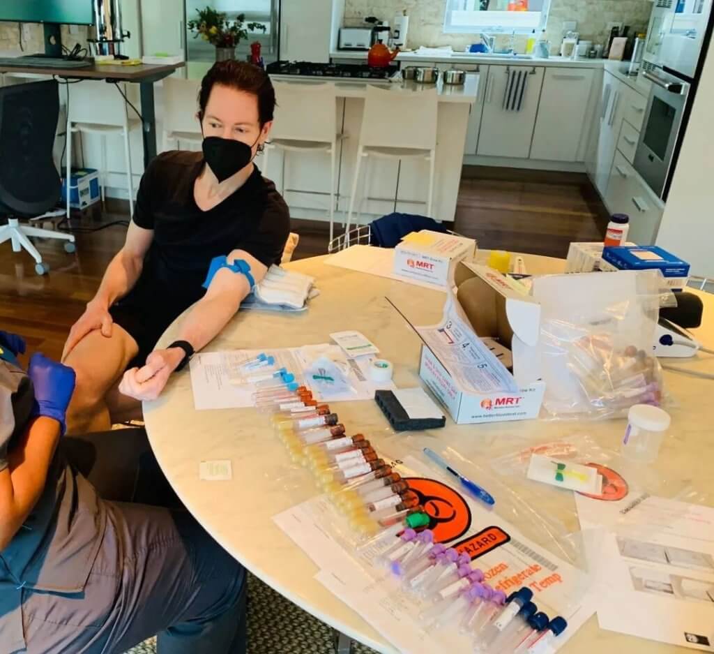 他自称采取严格的作息时间,实施热量限制、间歇性禁食,吃水煮蔬菜与多种坚果,服用大量补充剂和药物,频繁参与诊断测试。