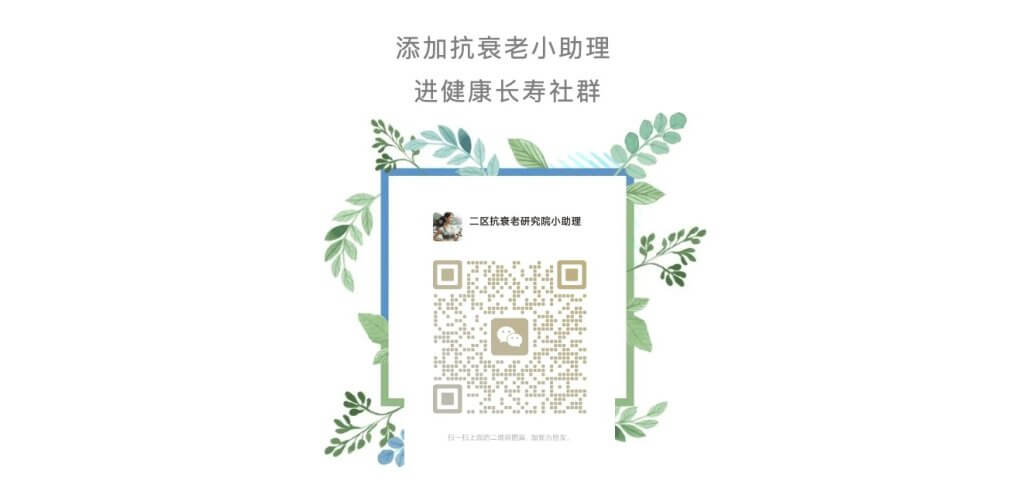 目前二区健康已有20+精准的健康长寿社群,欢迎添加助理微信号: erquzhuli,和我们一起来探索抗衰老长寿健康人生吧。